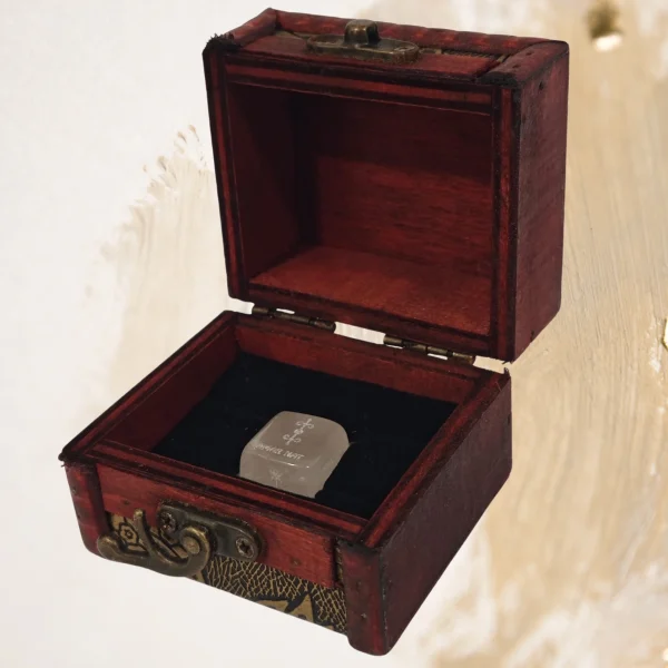 Namig za uporabo: Skrinjico s kocko Ljubezni postavite tja, kjer se tkejo vaše vezi in kjer si želite več topline, povezanosti in harmonije – naj bo to prostor za počitek, meditacijo ali srčne pogovore. Povežite se s simboli in izgovorite: “Izbiram, da ljubim – najprej sebe, nato svet.”